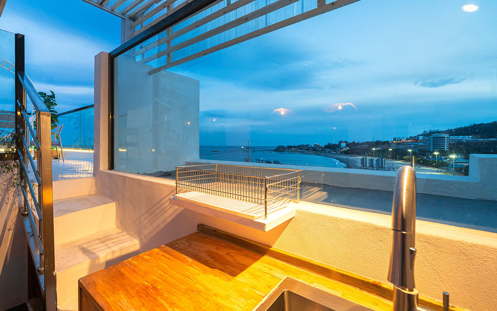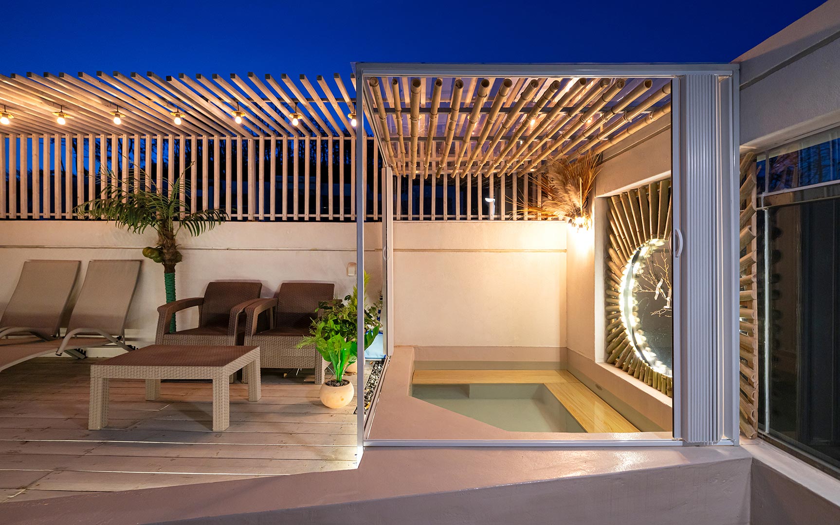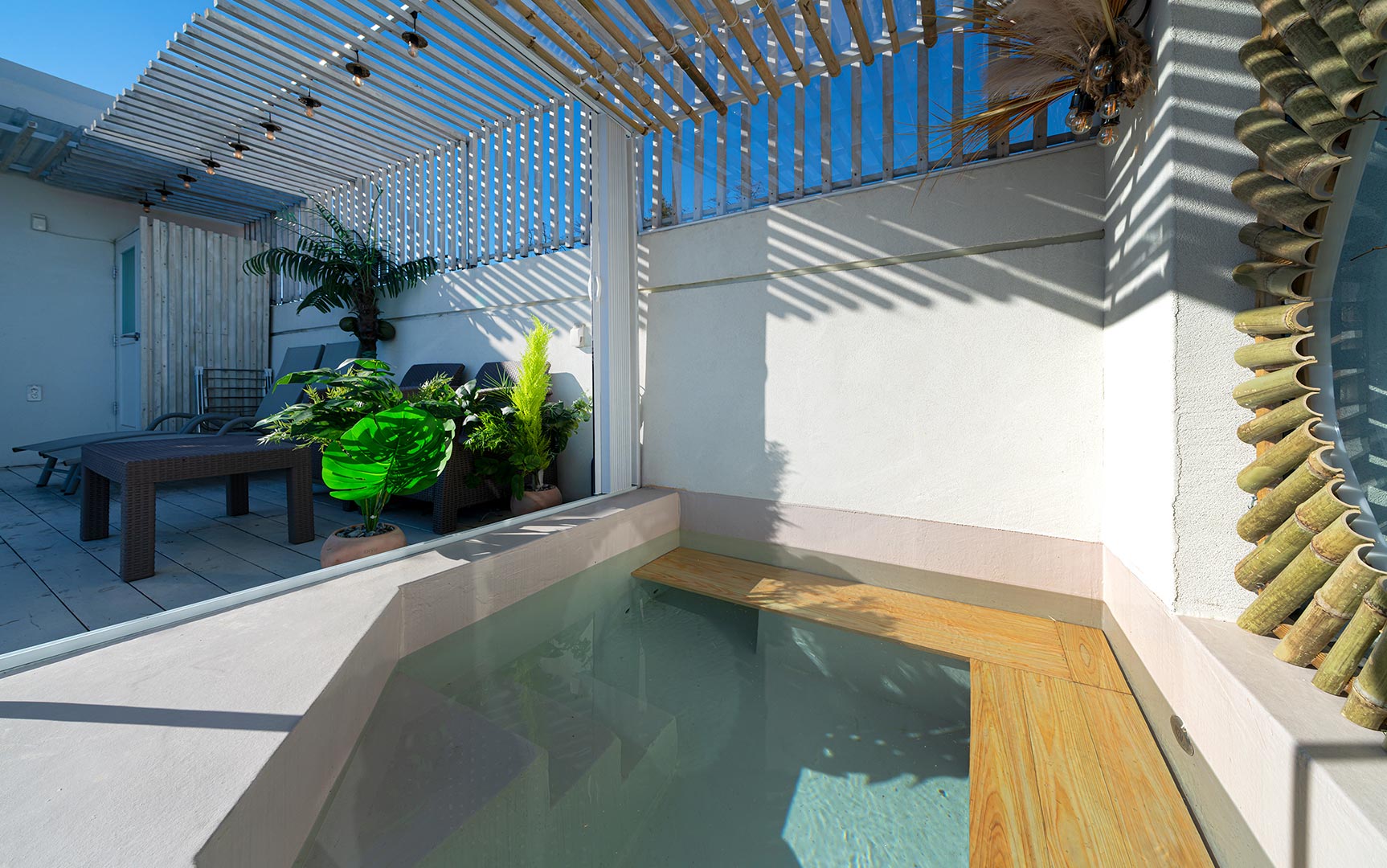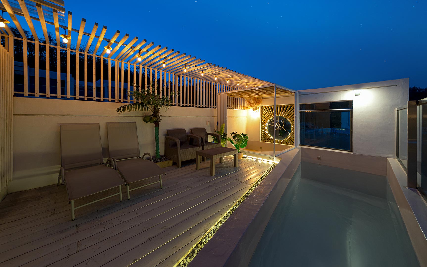 miro-B는 풀장과 데크, 바비큐장, 루프탑, 카페 3개의 공간이